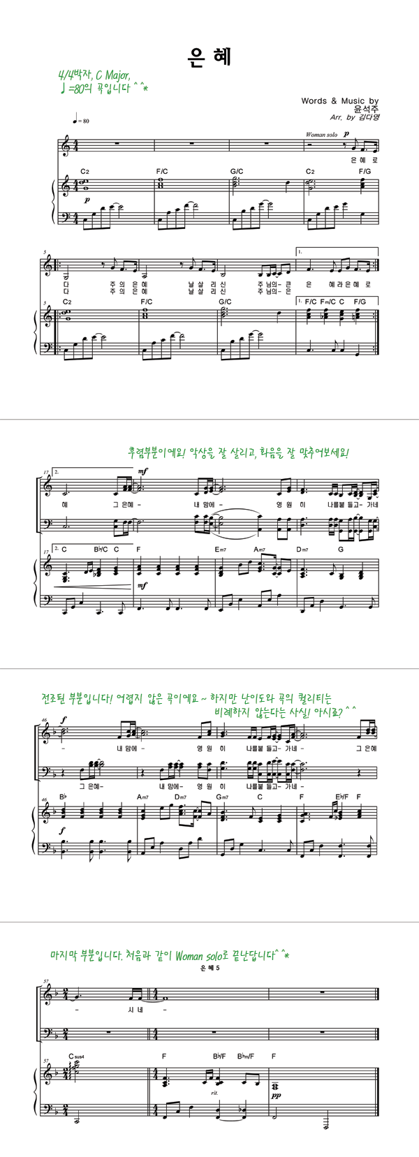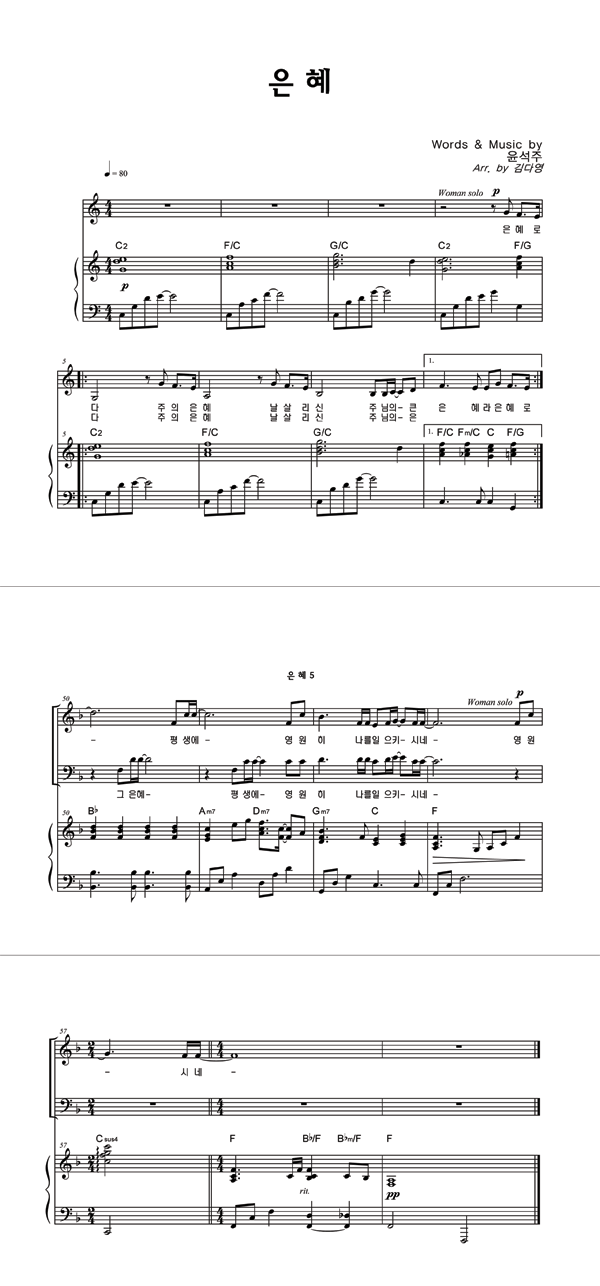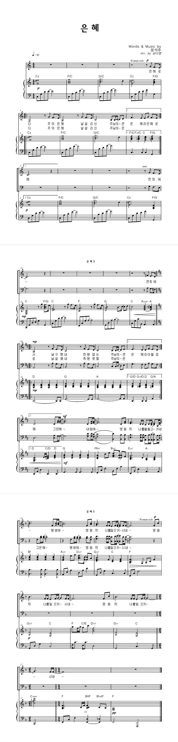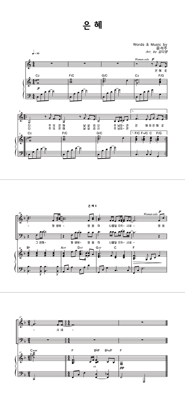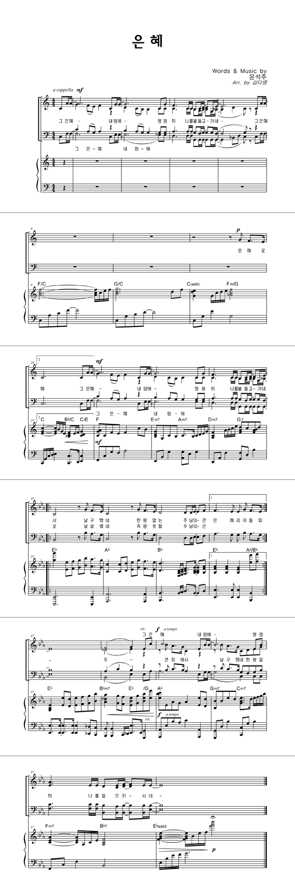 | 은혜 | 성가 2부 + 피아노 반주 |