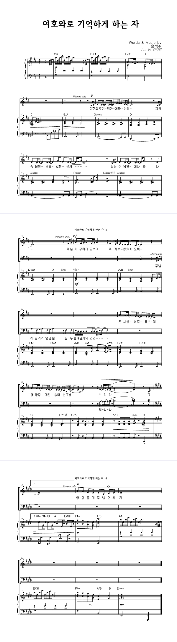 | 여호와로 기억하게 하는 자 | 성가 4부 + 피아노 반주 |