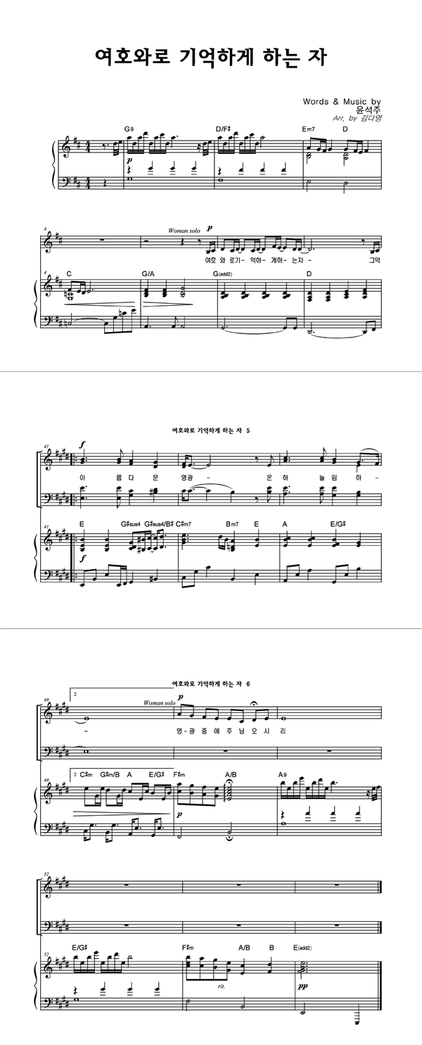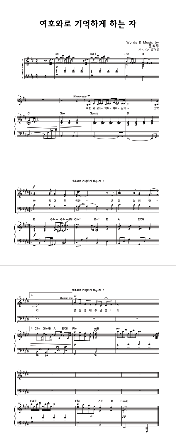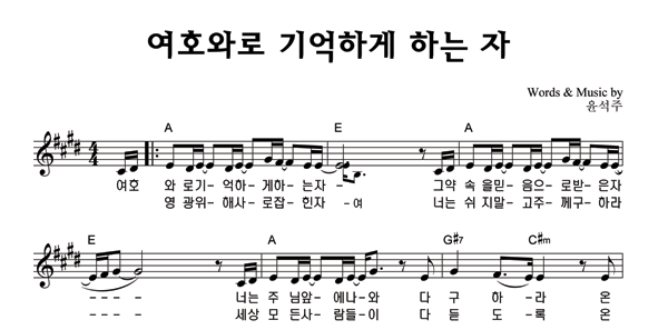 | 여호와로 기억하게 하는 자 | 성가 2부 + 피아노 반주 |