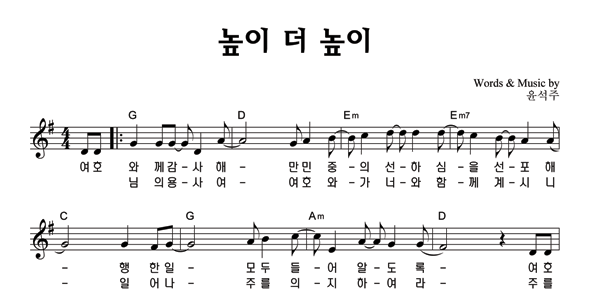 | 높이 더 높이 큰글씨 | 단선 |