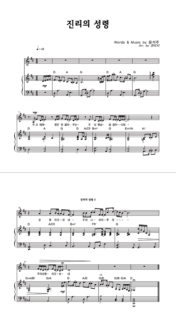 '진리의 성령' 의 다른 악보형식