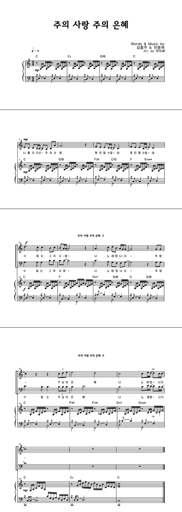 '주의 사랑 주의 은혜' 의 다른 악보형식