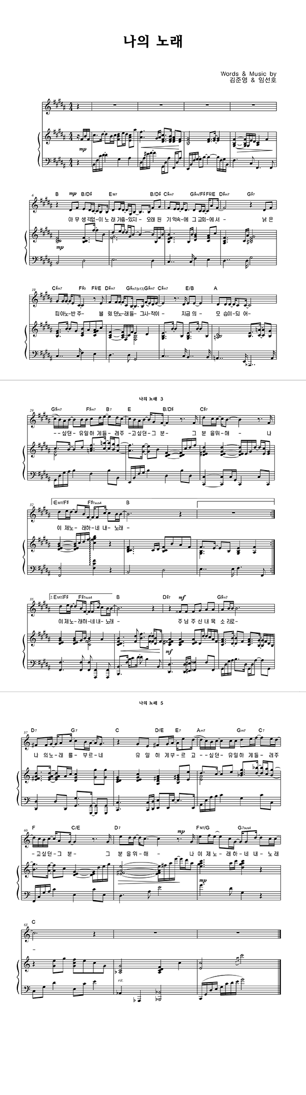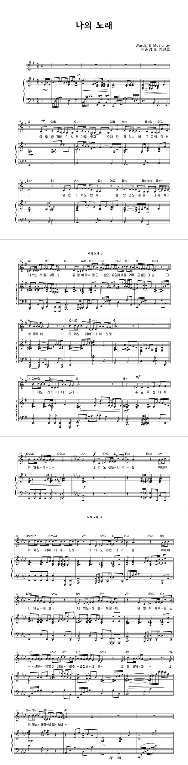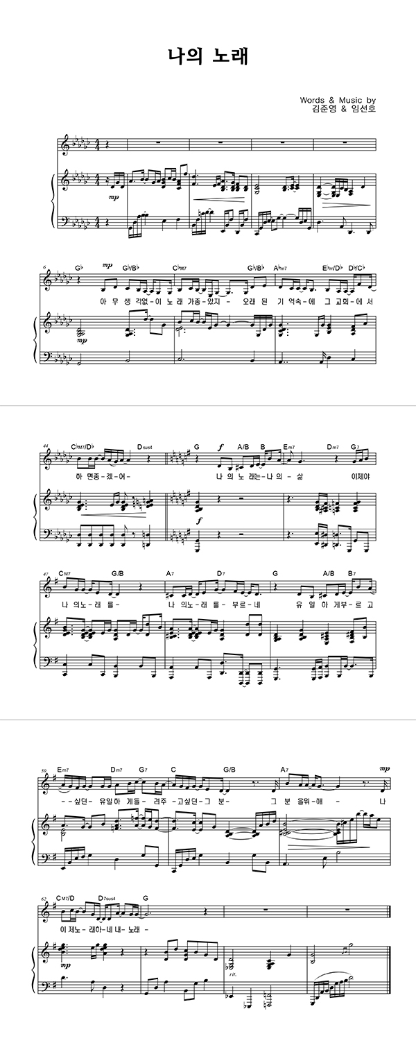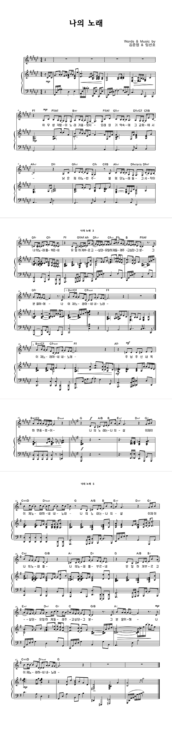| 나의 노래 | 성가 3부 + 피아노 반주 |