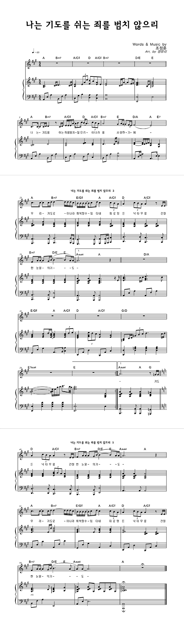 '나는 기도를 쉬는 죄를 범치 않으리' 의 다른 악보형식