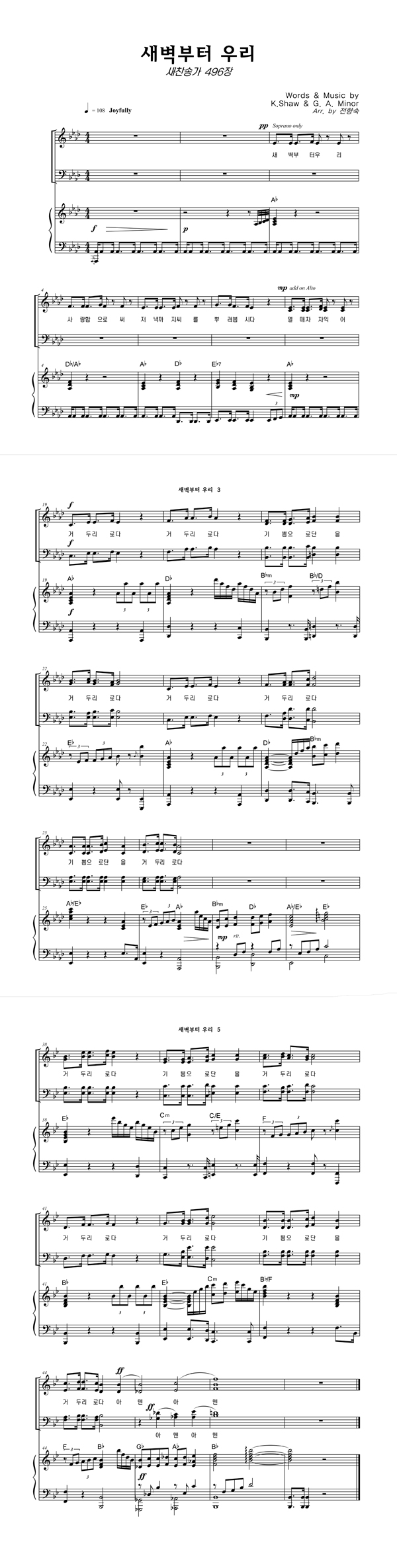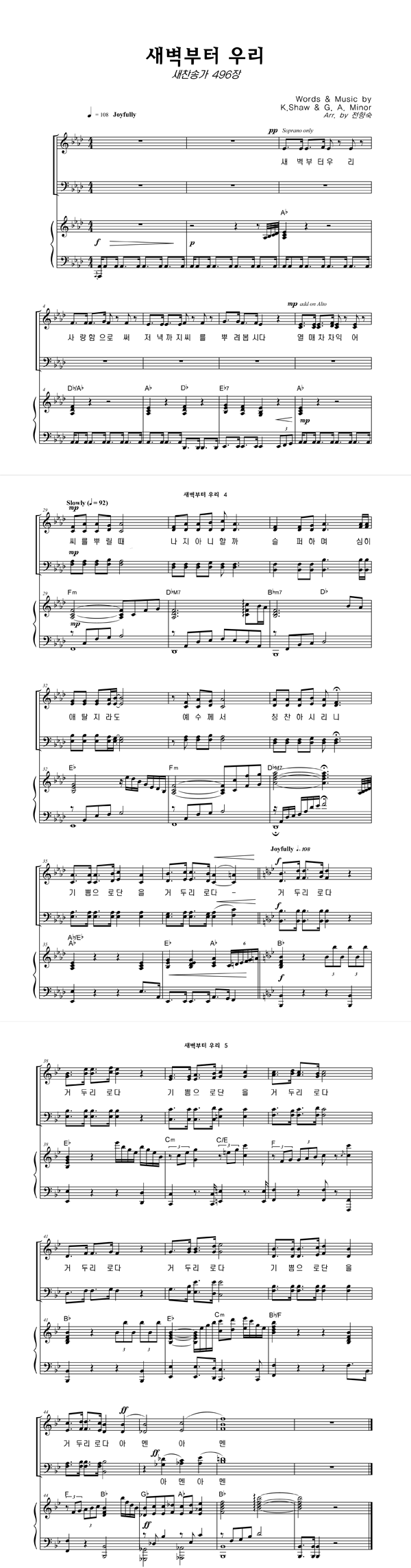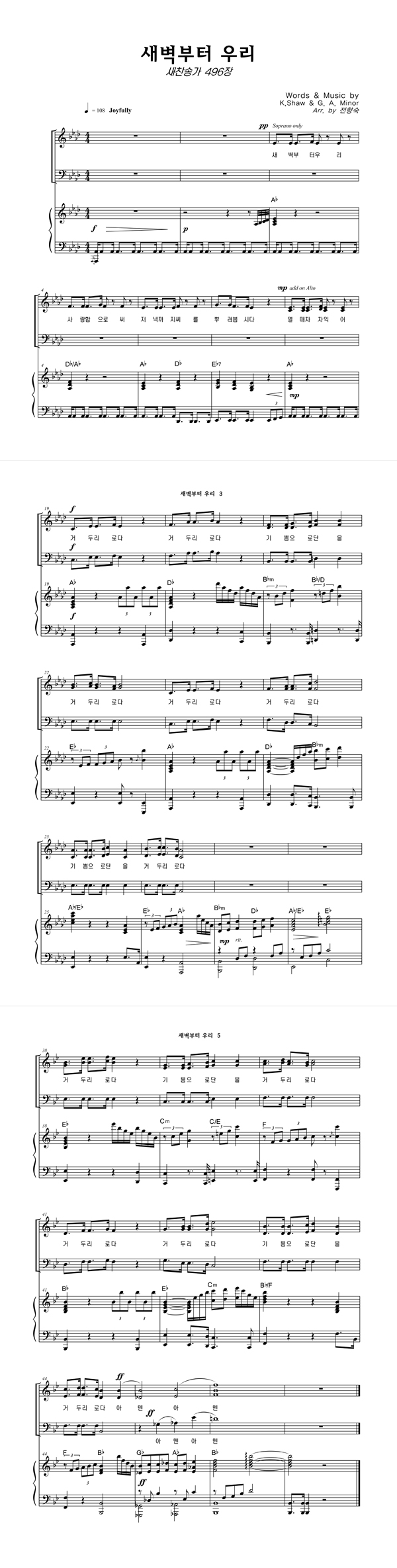 | 새벽부터 우리 | 성가 3부 + 피아노 반주 |