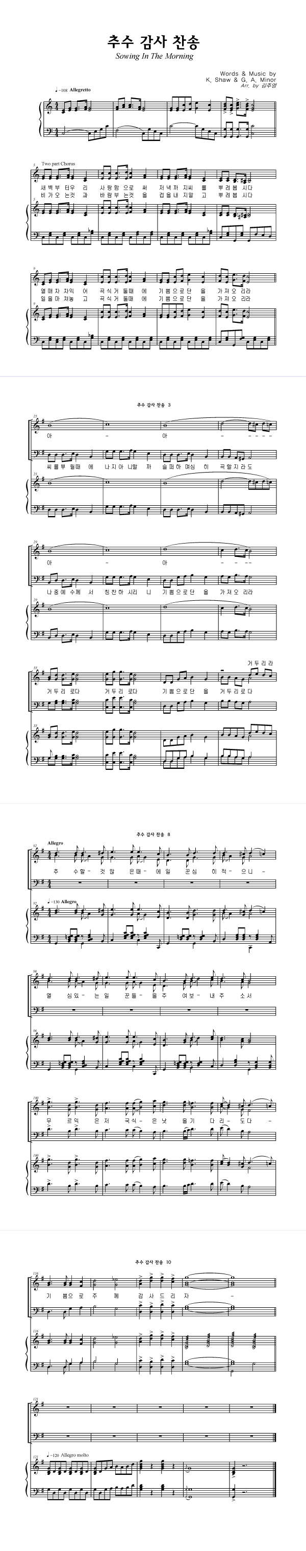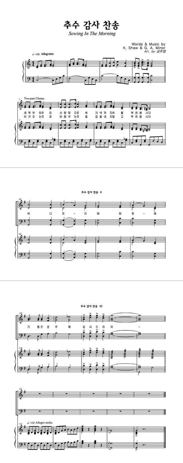 | 추수 감사 찬송 | 성가 4부 + 피아노 반주 |
