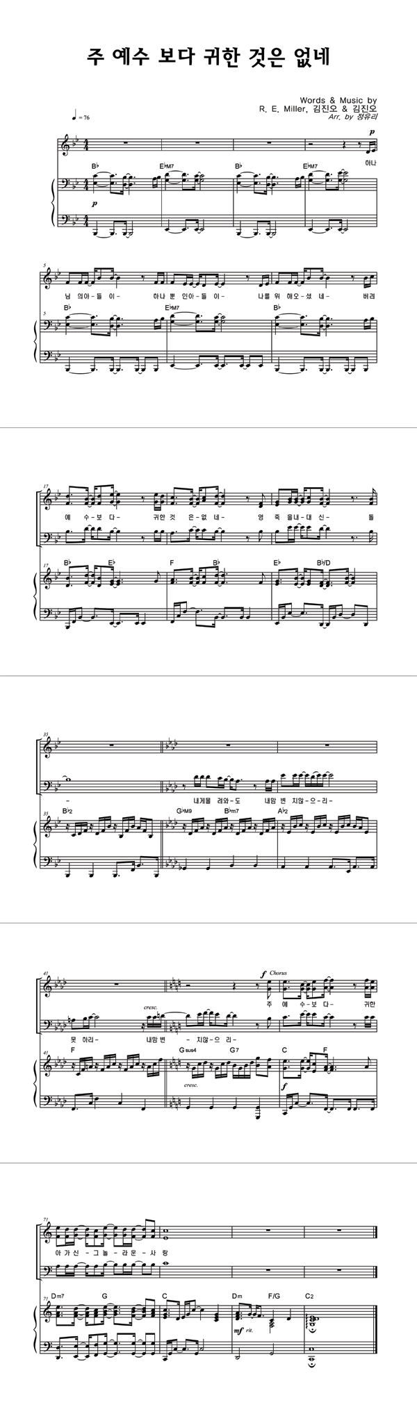 | 주 예수 보다 귀한 것은 없네 | 성가 4부 + 피아노 반주 |