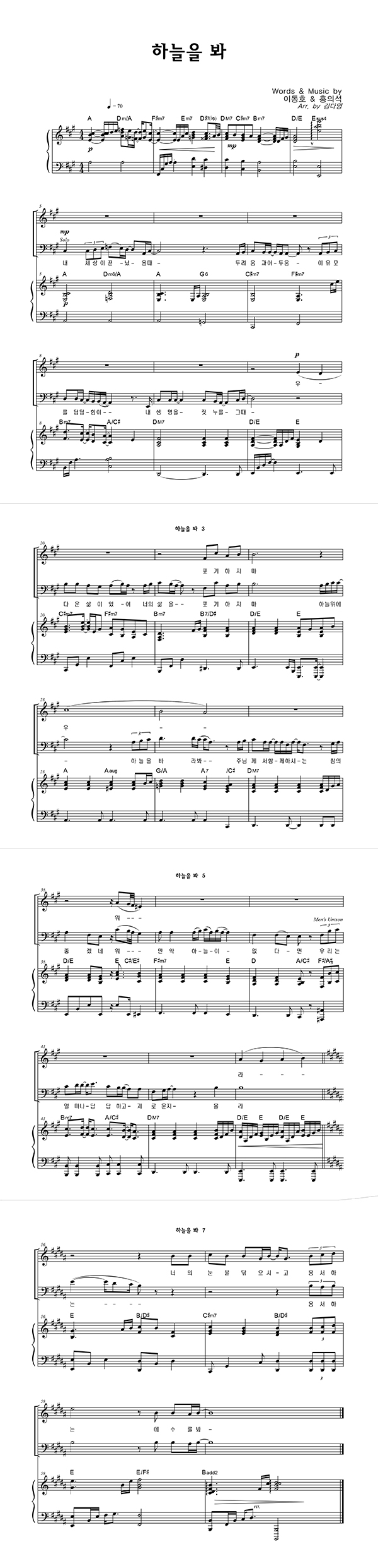 | 하늘을 봐 | 성가 3부 + 피아노 반주 |