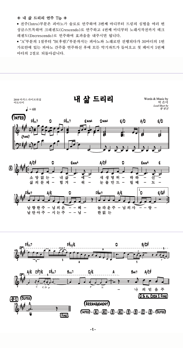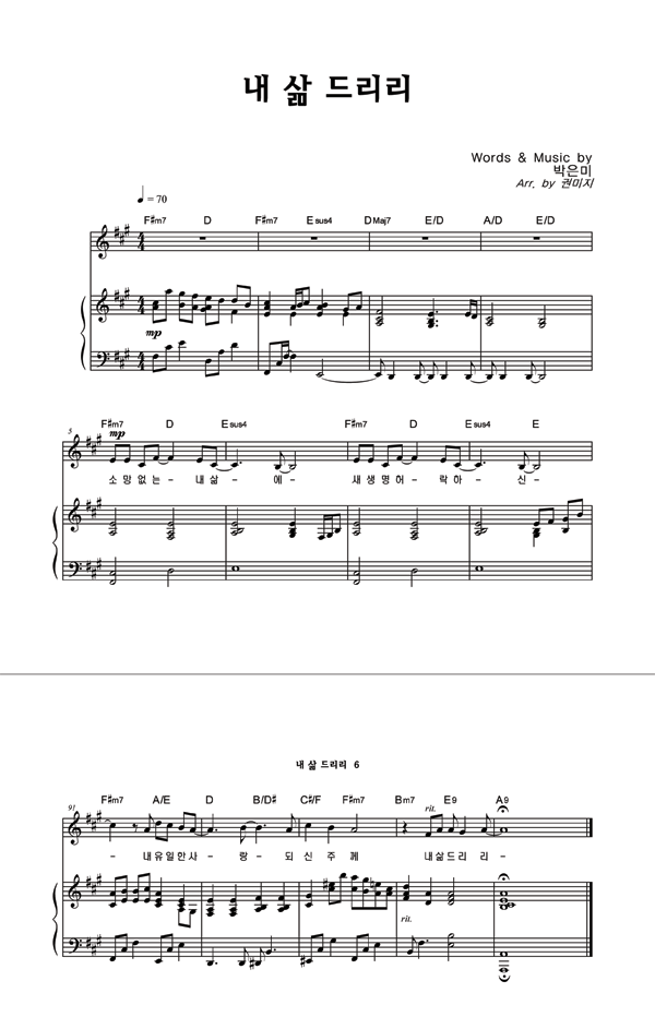 | 내 삶 드리리 | 성가 3부 + 피아노 반주 |