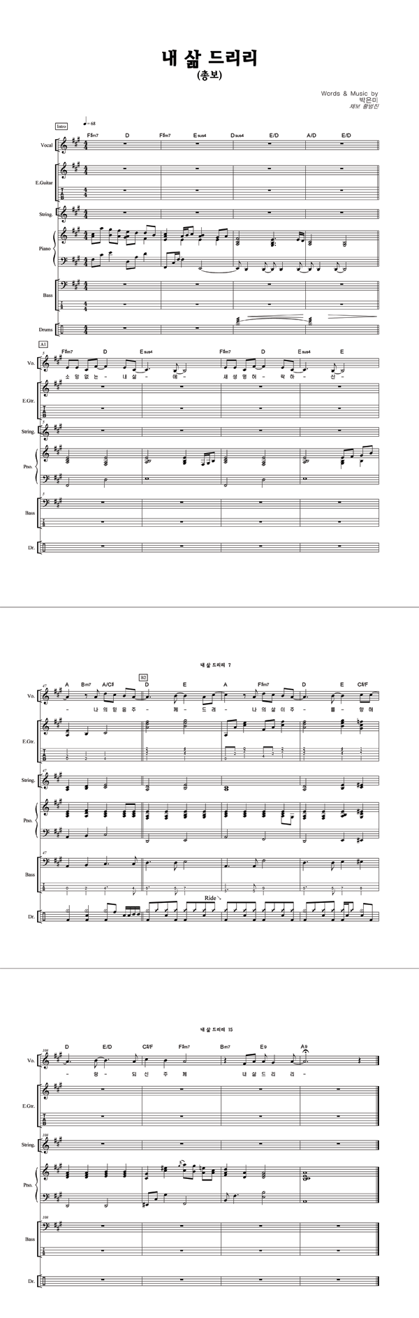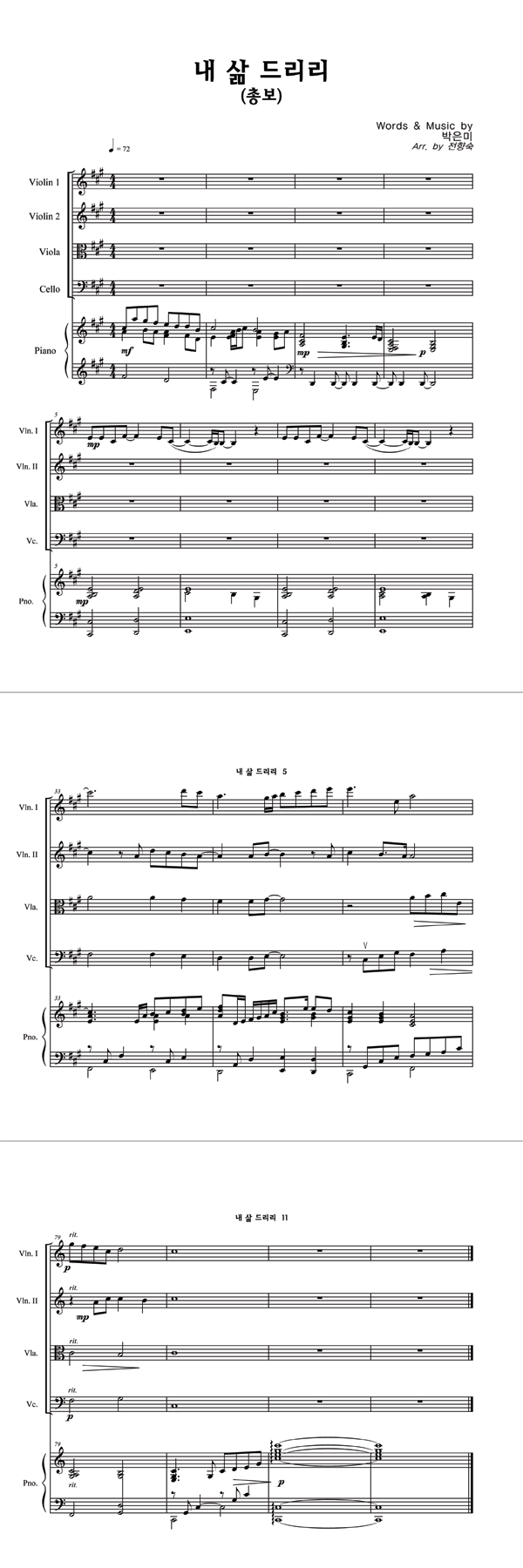 | 내 삶 드리리 | 성가 4부 + 피아노 반주 |