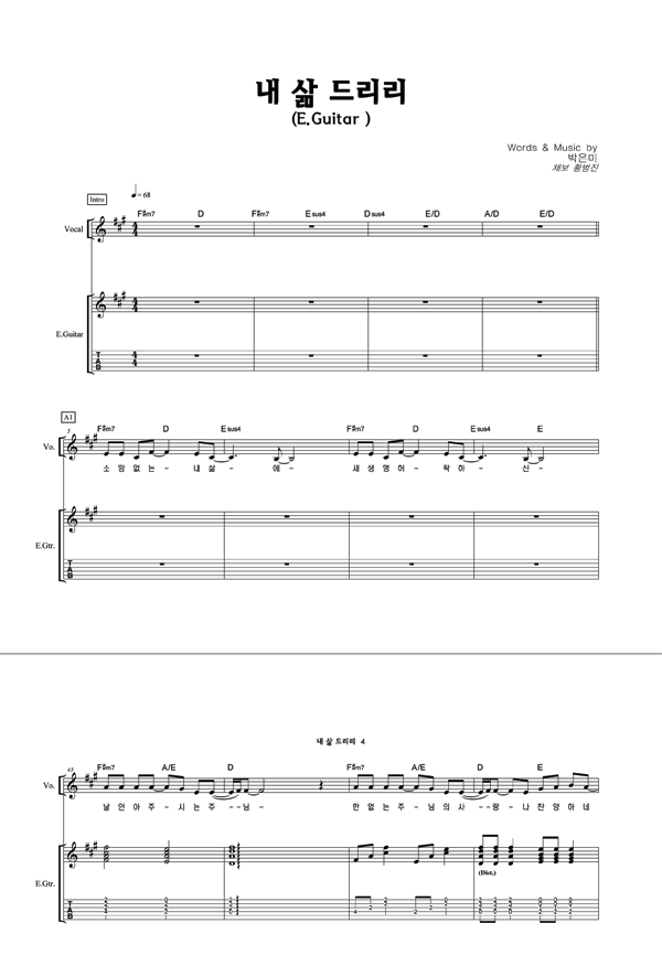 | 내 삶 드리리 큰글씨 | 성가 4부 + 피아노 반주 |