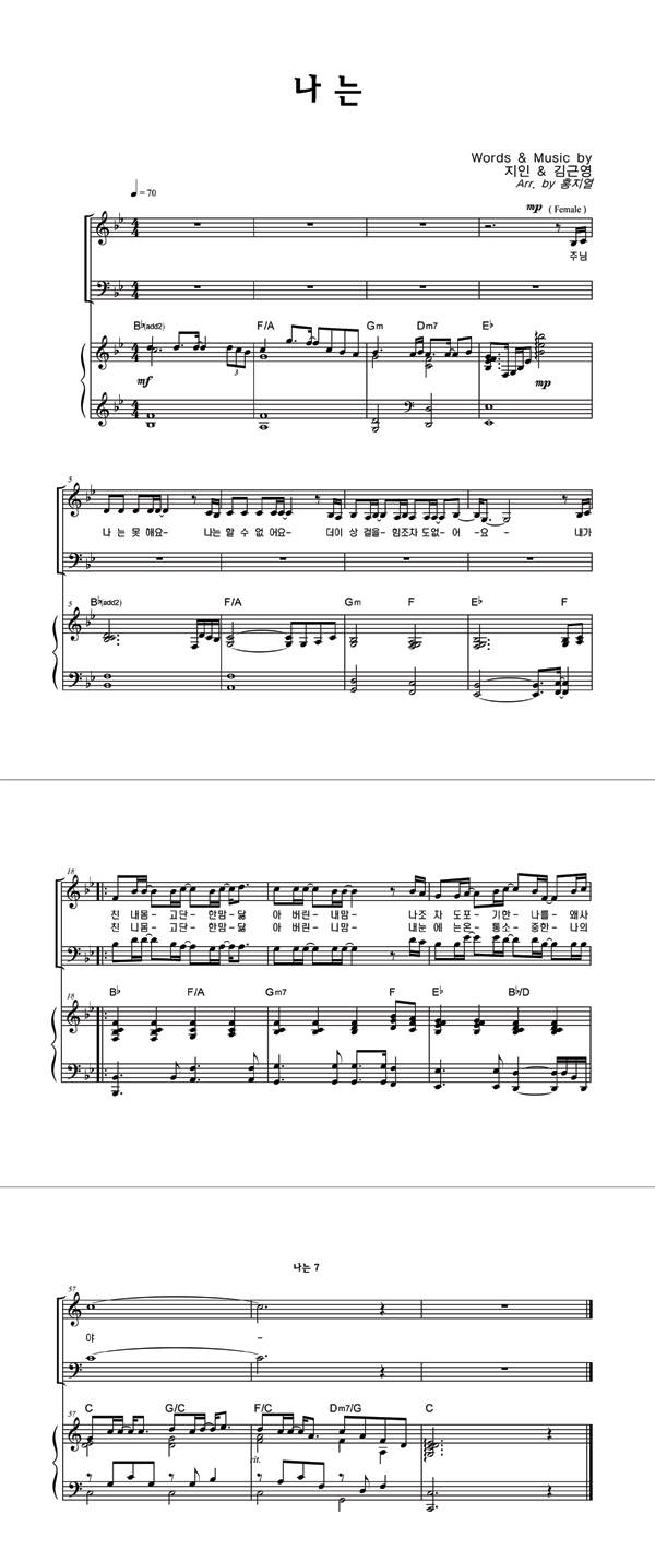 | 나는 | 성가 4부 + 피아노 반주 |