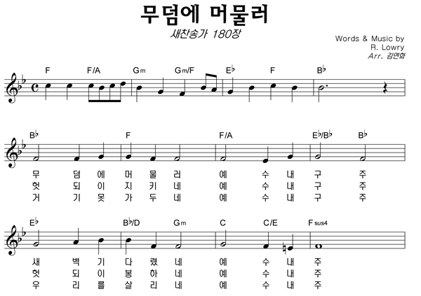 '무덤에 머물러 (찬송가 160장)' 의 다른 악보형식
