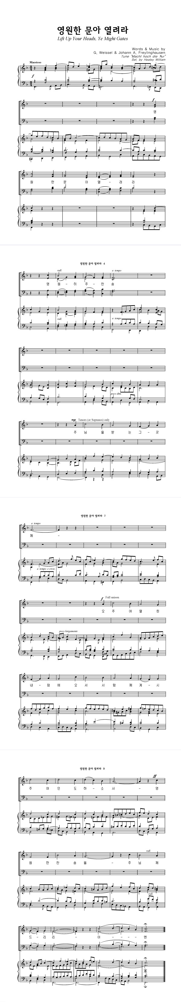 | 영원한 문아 열려라 | 성가 4부 + 피아노 반주 |