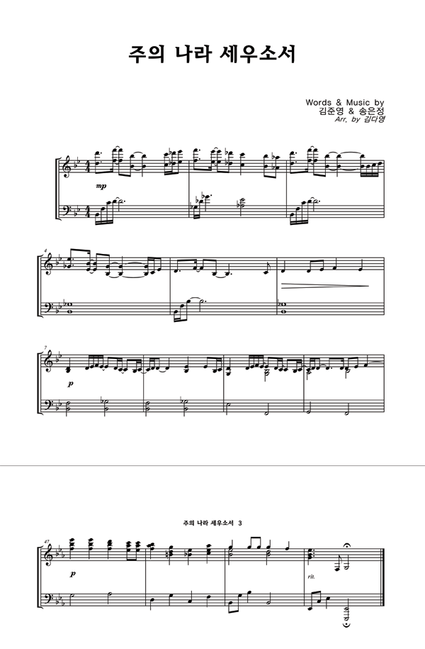 | 주의 나라 세우소서 | 성가 3부 + 피아노 반주 |