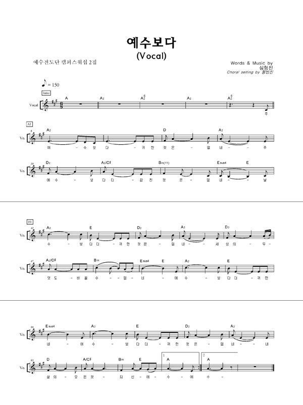 '예수보다' 의 다른 악보형식