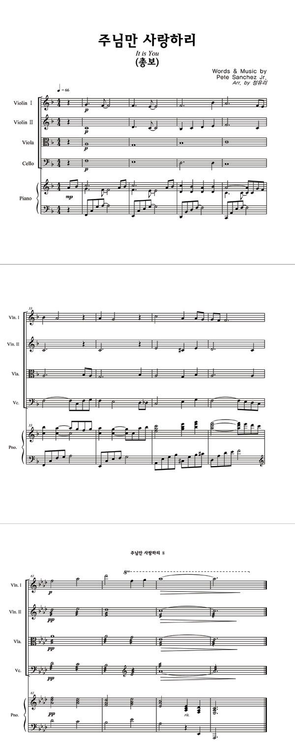 | 주님만 사랑하리 | 성가 2부 + 피아노 반주 |