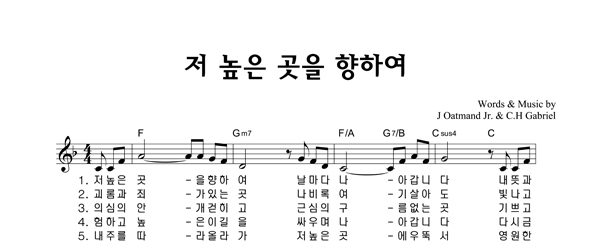 | 저 높은 곳을 향하여 (찬송가 491장) | 성가 4부 + 피아노 반주 |