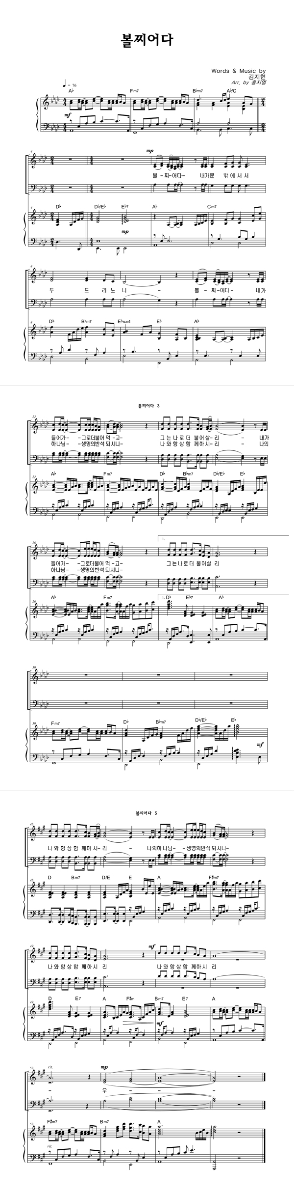 | 성가 2부 + 피아노 반주 |