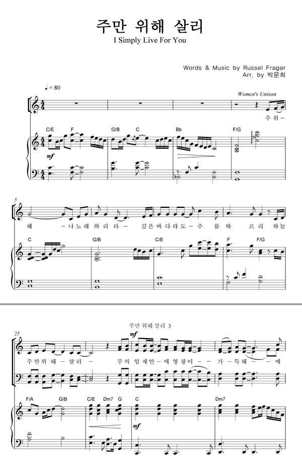 | 주만 위해 살리 | 성가 4부 + 피아노 반주 |