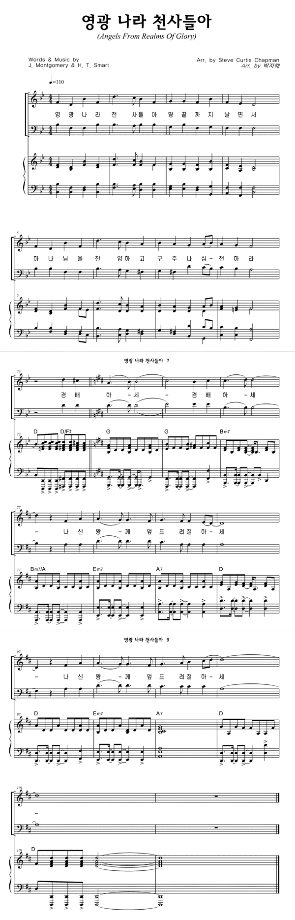| 영광나라 천사들아 (Steven Curtis Chapman 편곡) | 성가 3부 + 피아노 반주 |