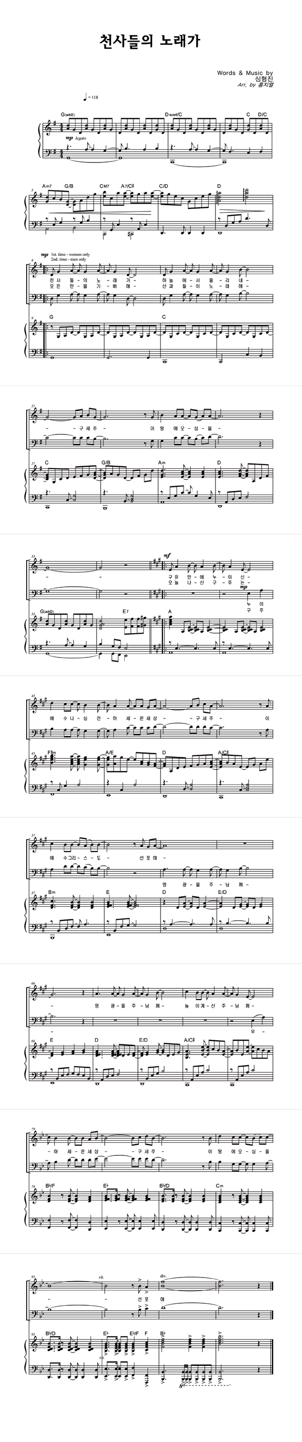 | 천사들의 노래가 | 성가 4부 + 피아노 반주 |