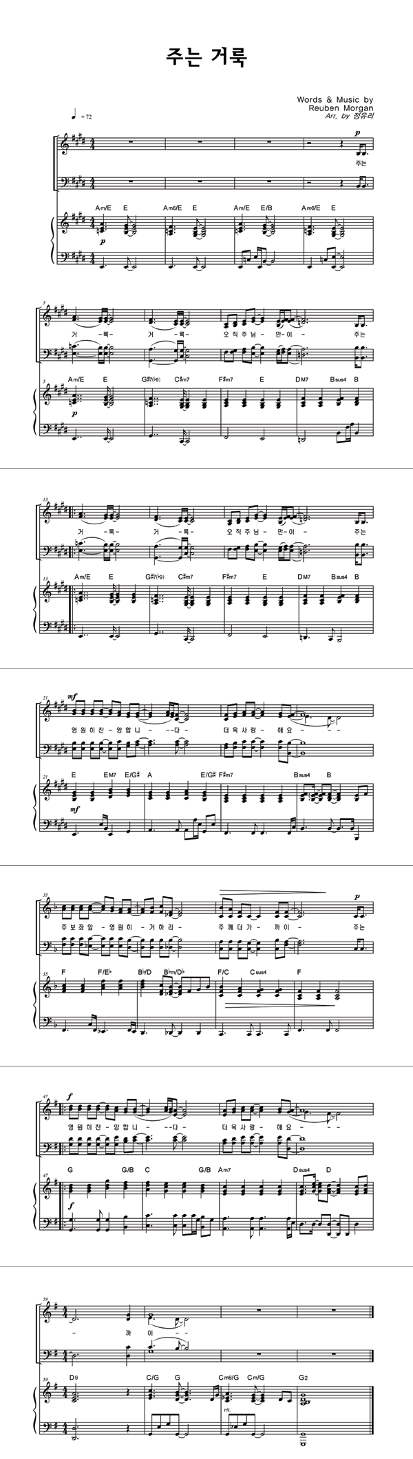 | 주는 거룩 | 성가 3부 + 피아노 반주 |
