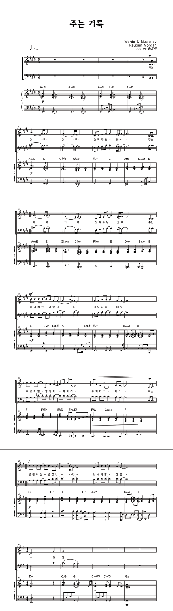 | 주는 거룩 | 성가 2부 + 피아노 반주 |