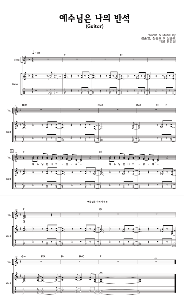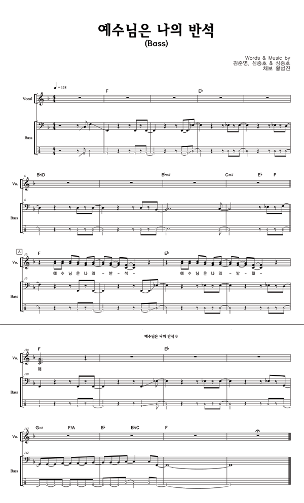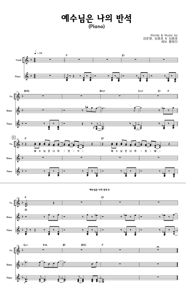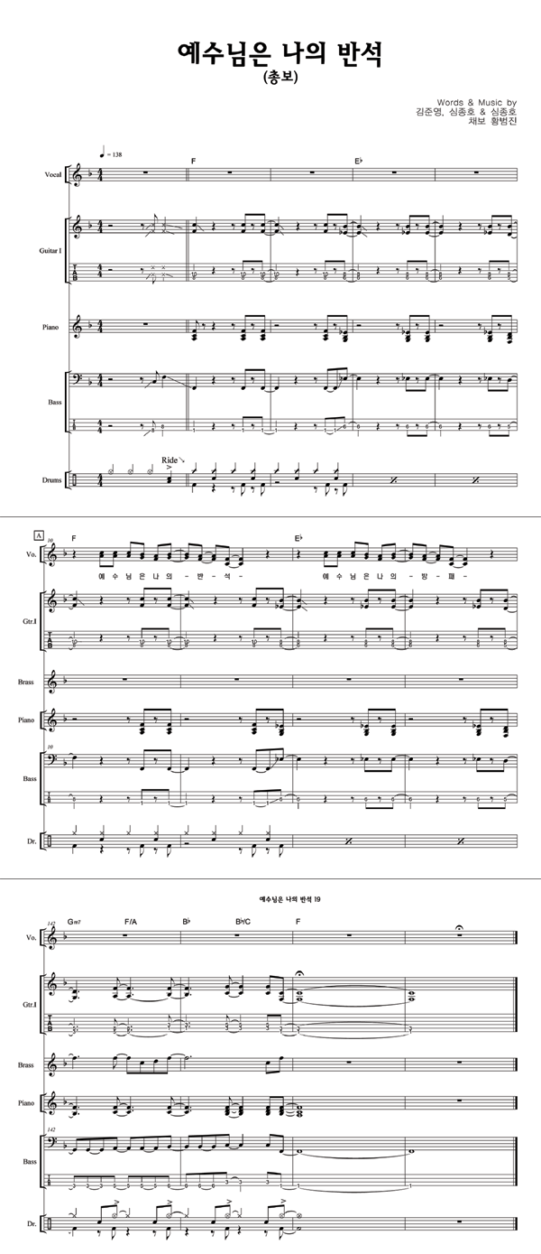 | 예수님은 나의 반석 | 성가 3부 + 피아노 반주 |