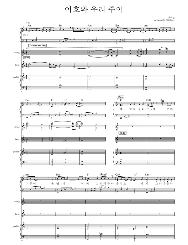 | 한라에서 백두까지 백두에서 땅 끝까지 | 성가 2부 + 피아노 반주 |