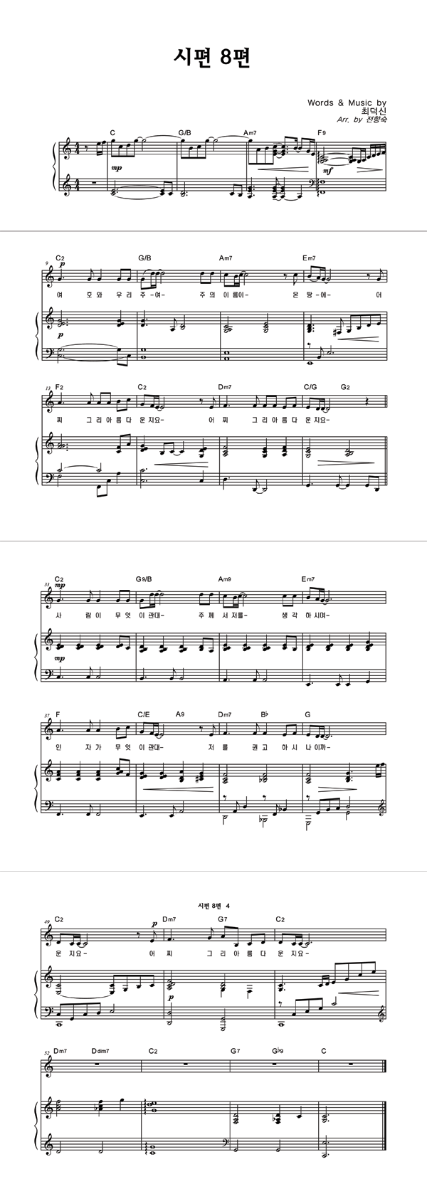 | 경배하리 내 온 맘 다해 | 성가 4부 + 피아노 반주 |