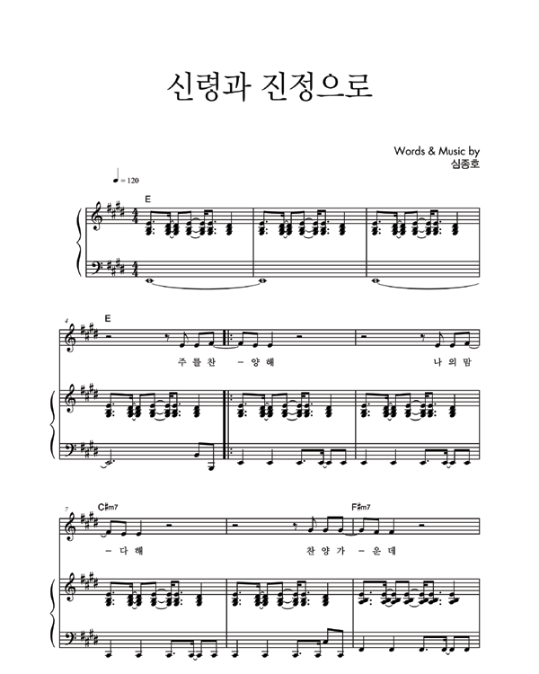 | 신령과 진정으로 | 성가 2부 + 피아노 반주 |