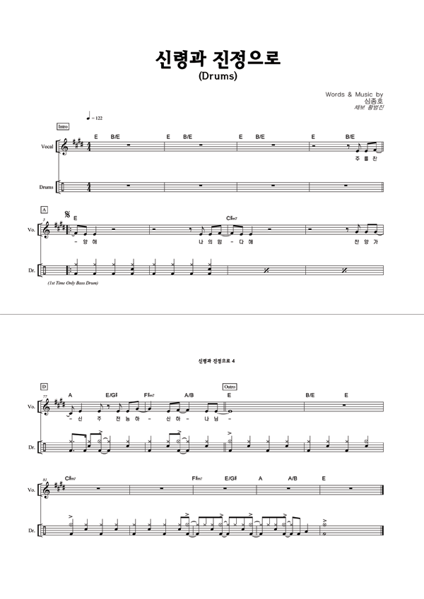 | 신령과 진정으로 | 성가 4부 + 피아노 반주 |