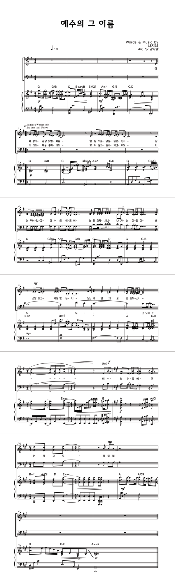 | 예수의 그 이름 | 성가 3부 + 피아노 반주 |