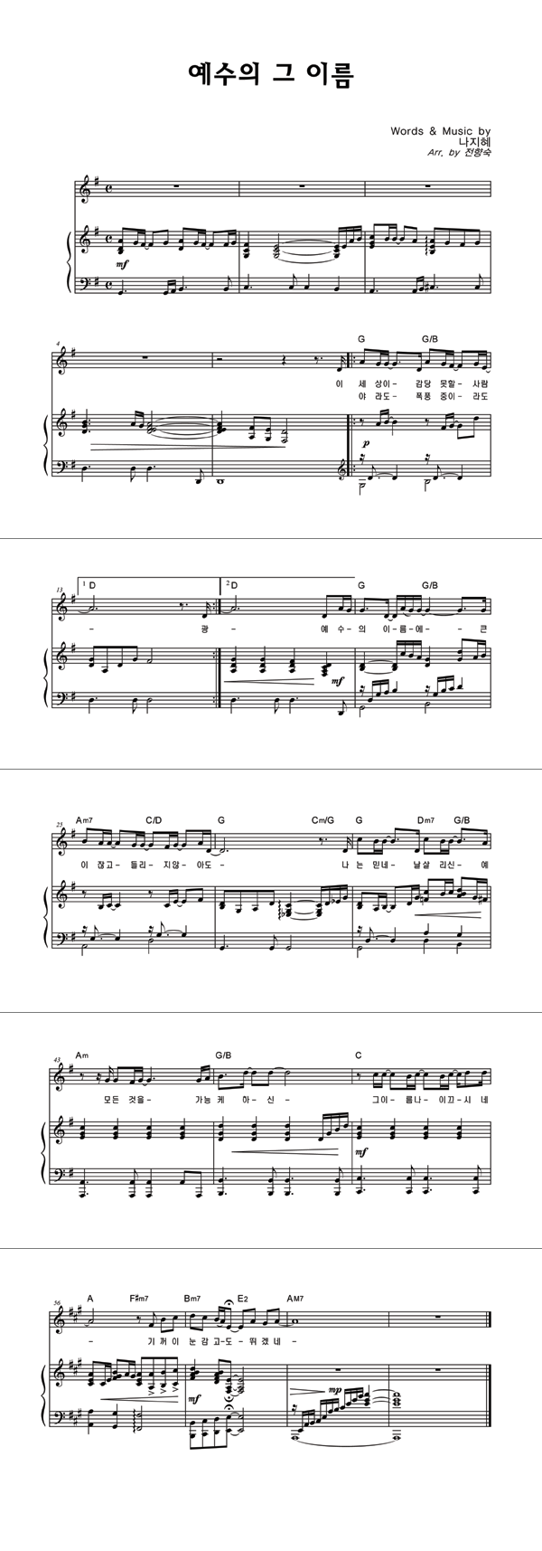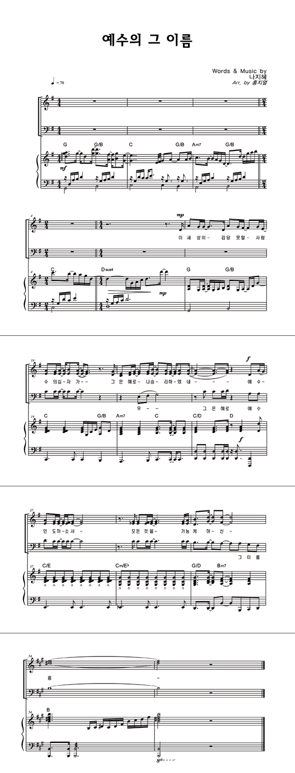 | 예수의 그 이름 | 성가 4부 + 피아노 반주 |