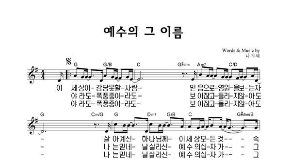| 예수의 그 이름 큰글씨 | 성가 4부 + 피아노 반주 |