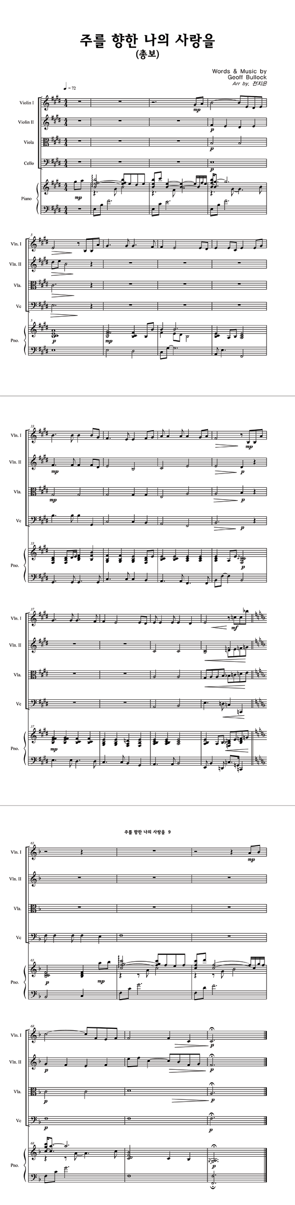 | 주를 향한 나의 사랑을 | 성가 3부 + 피아노 반주 |