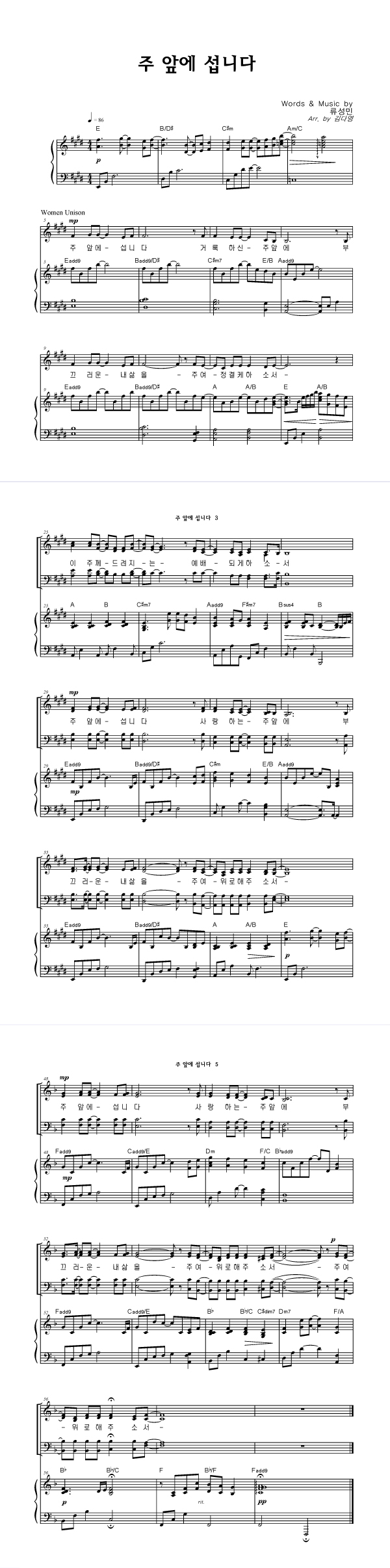 | 주 앞에 섭니다 | 성가 4부 + 피아노 반주 |