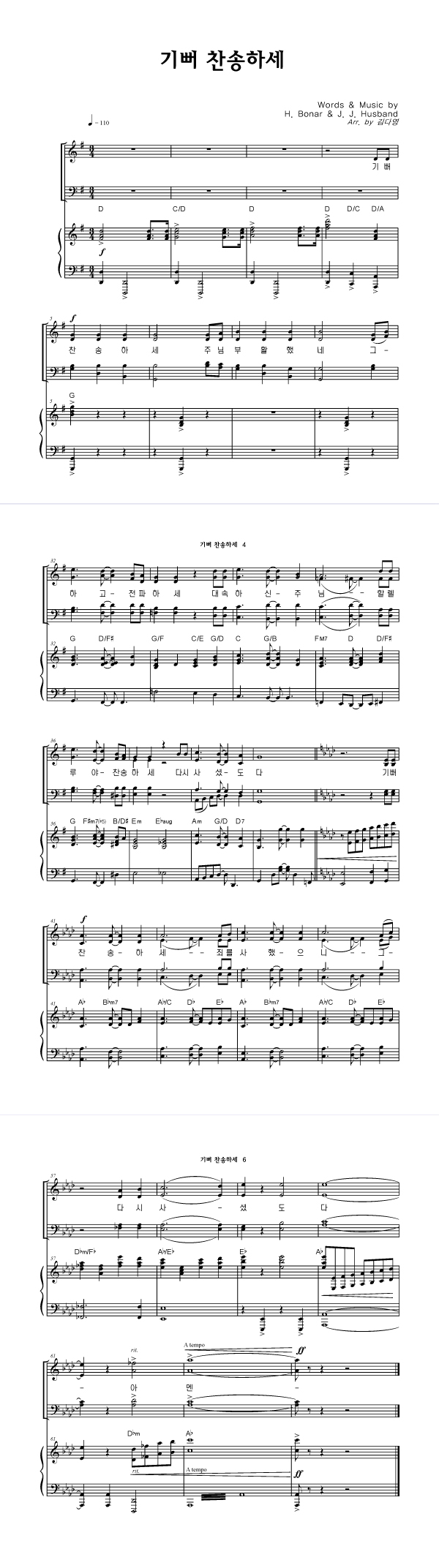 | 기뻐 찬송하세 | 성가 4부 + 피아노 반주 |