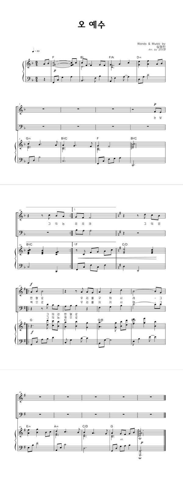 | 오 예수 | 성가 2부 + 피아노 반주 |