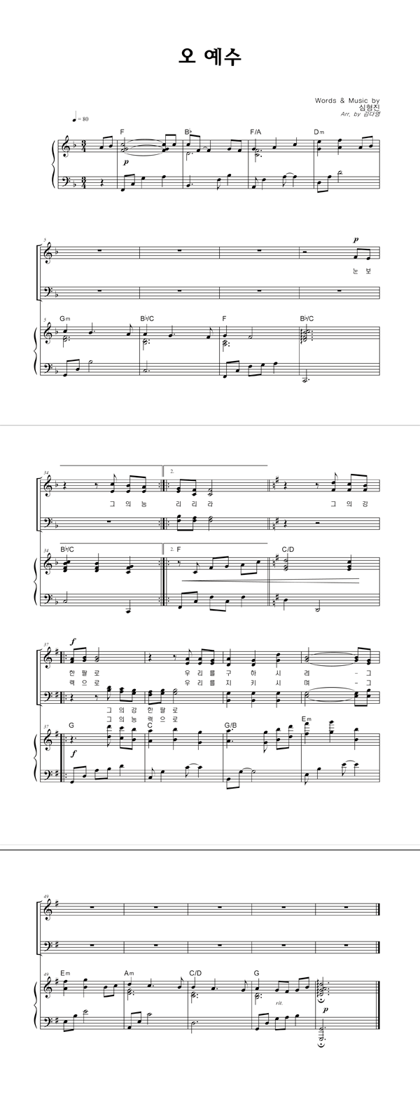 | 오 예수 | 성가 3부 + 피아노 반주 |