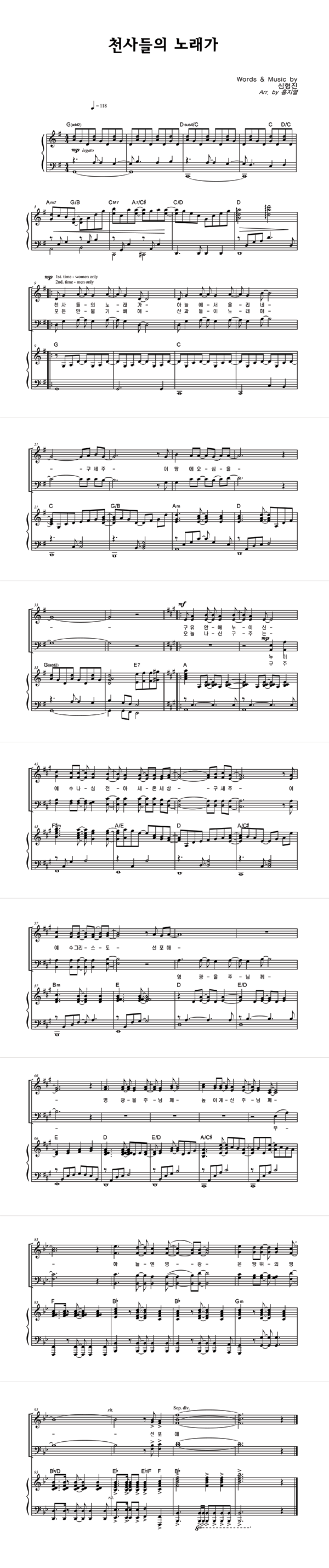 | 천사들의 노래가 | 성가 4부 + 피아노 반주 |
