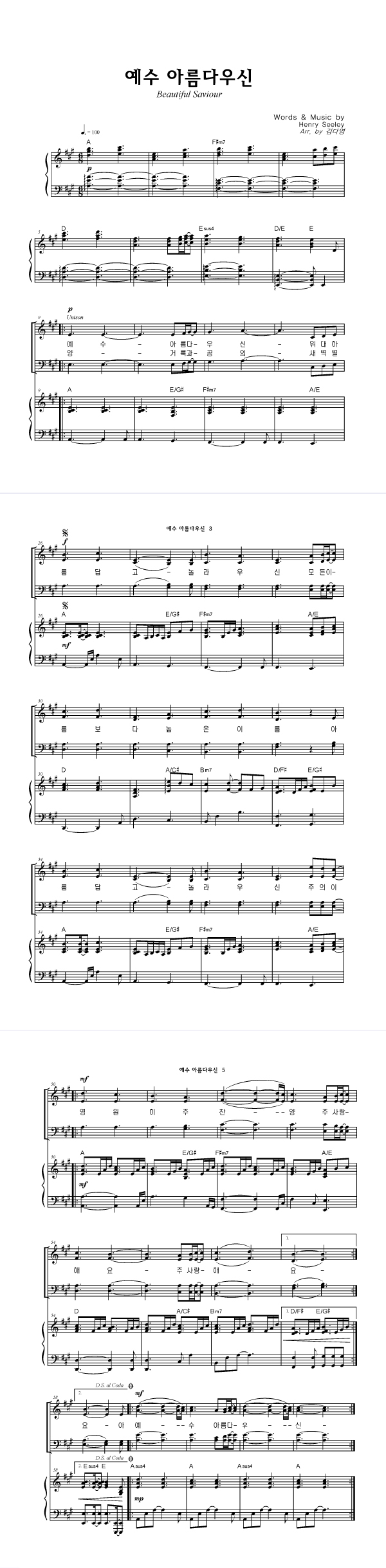 | 예수 아름다우신 | 성가 2부 + 피아노 반주 |