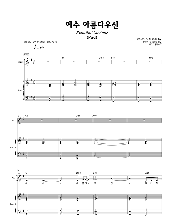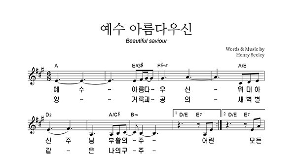 | 예수 아름다우신 | 성가 4부 + 피아노 반주 |