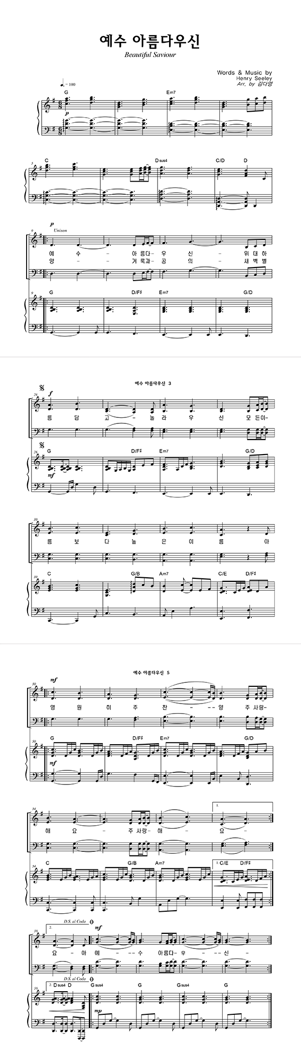 | 예수 아름다우신 | 성가 3부 + 피아노 반주 |