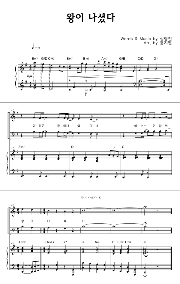 | 왕이 나셨다 | 성가 3부 + 피아노 반주 |
