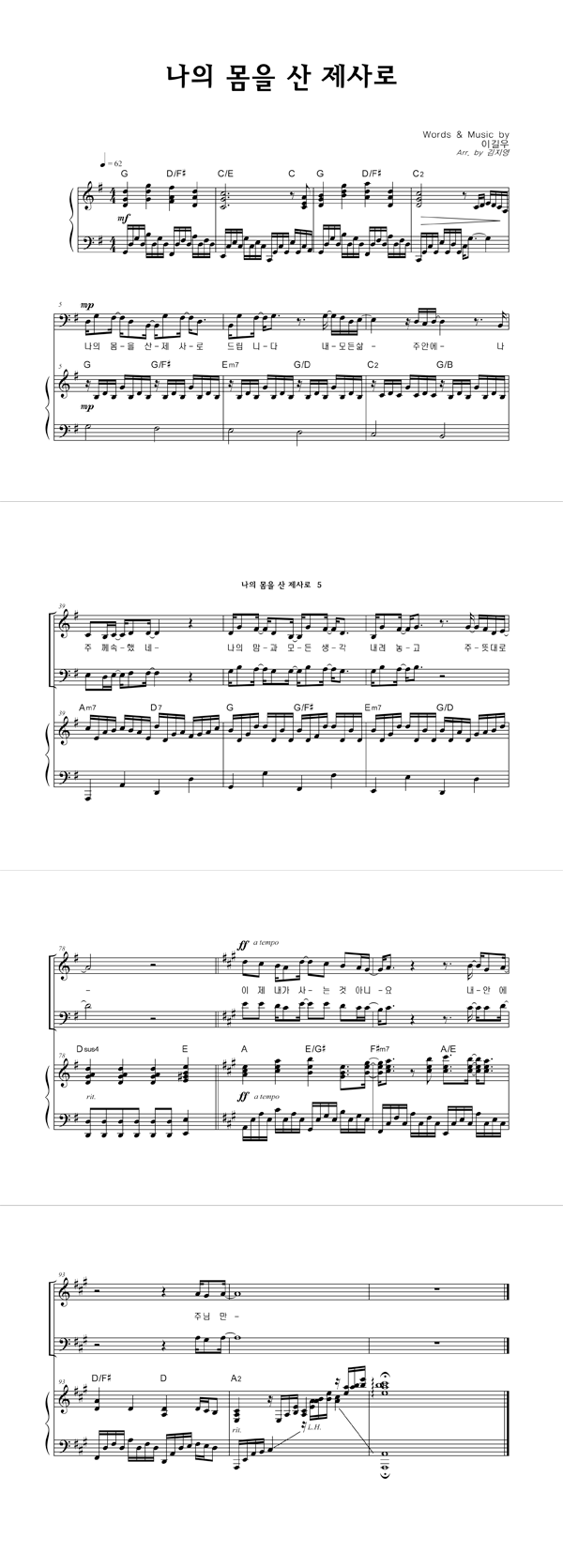 | 나의 몸을 산 제사로 | 성가 4부 + 피아노 반주 |