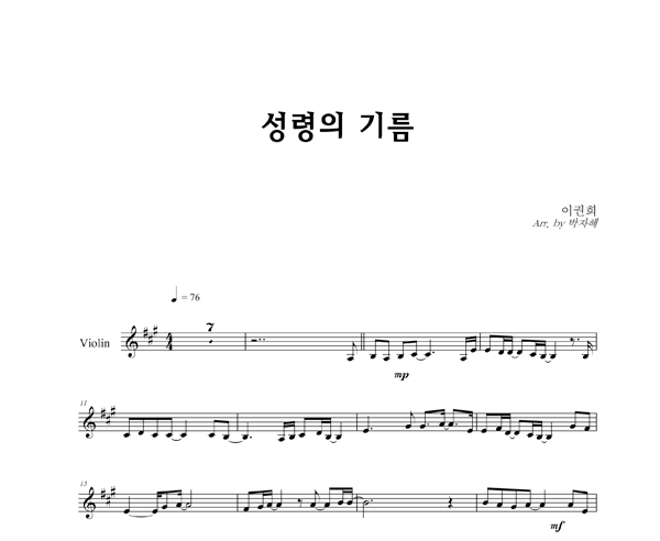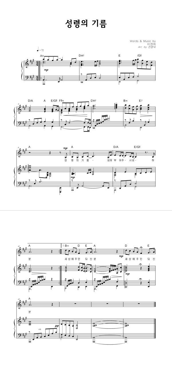 | 성령의 기름 | 성가 2부 + 피아노 반주 |