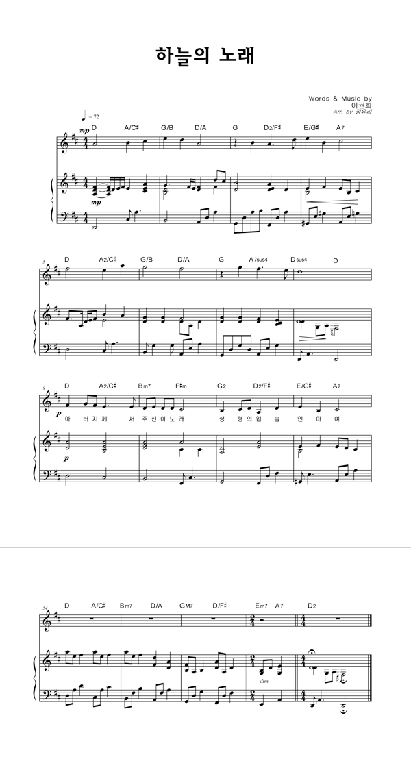 | 하늘의 노래 | 성가 2부 + 피아노 반주 |