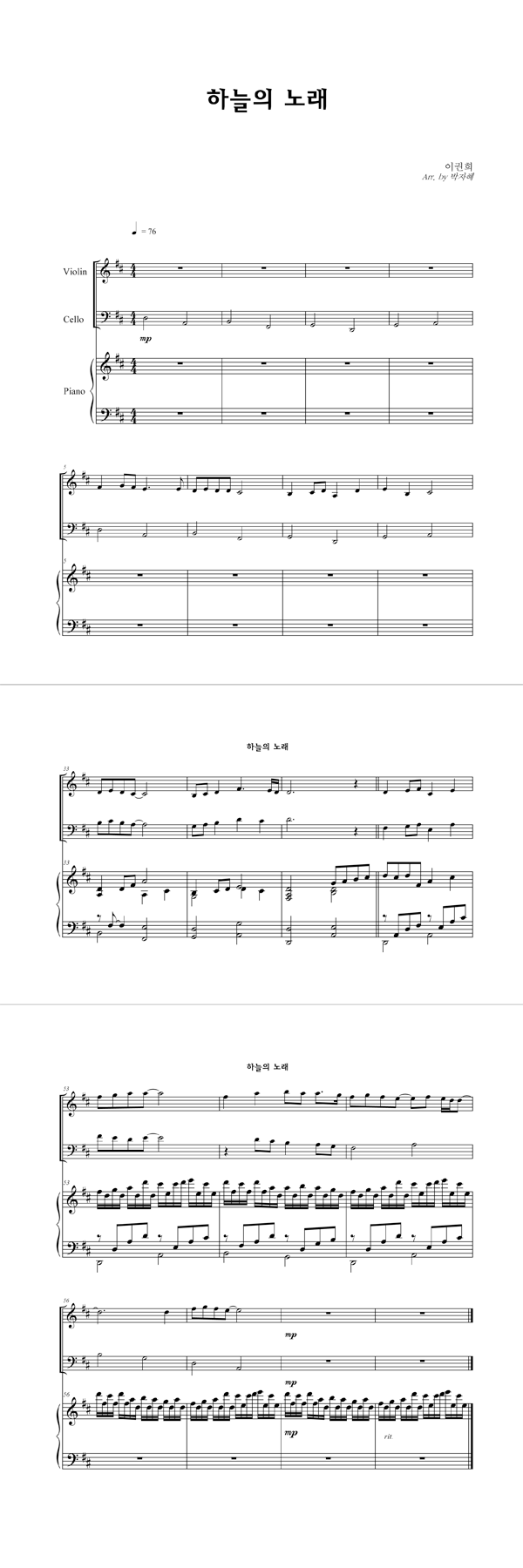 | 하늘의 노래 | 성가 3부 + 피아노 반주 |